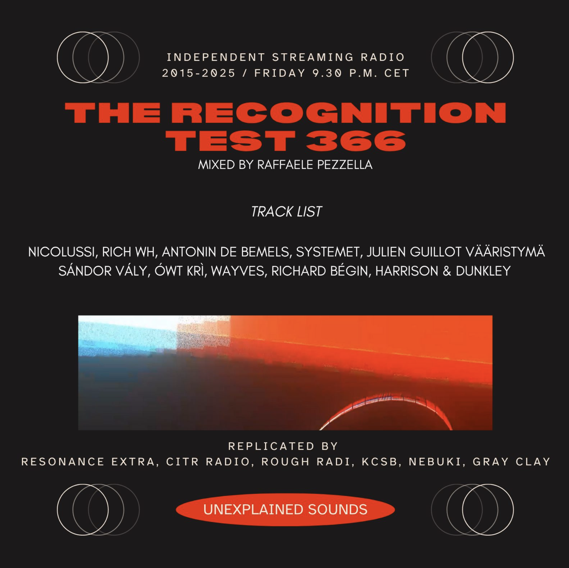Unexplained Sounds radio transmission, The Recognition Test # 366. Mixed by Raffaele Pezzella (a.k.a. Sonologyst).